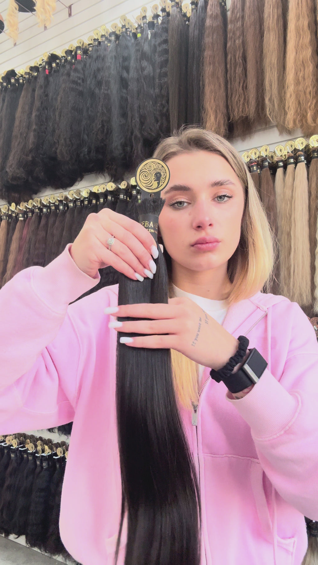Premium-quality virgin raw human hair in natural jet black. This 84g straight baby hair bulk is silky, fine, and unprocessed — no dyes, no silicone, no chemicals. You're getting the hair in its natural state, just as it came from the donor.