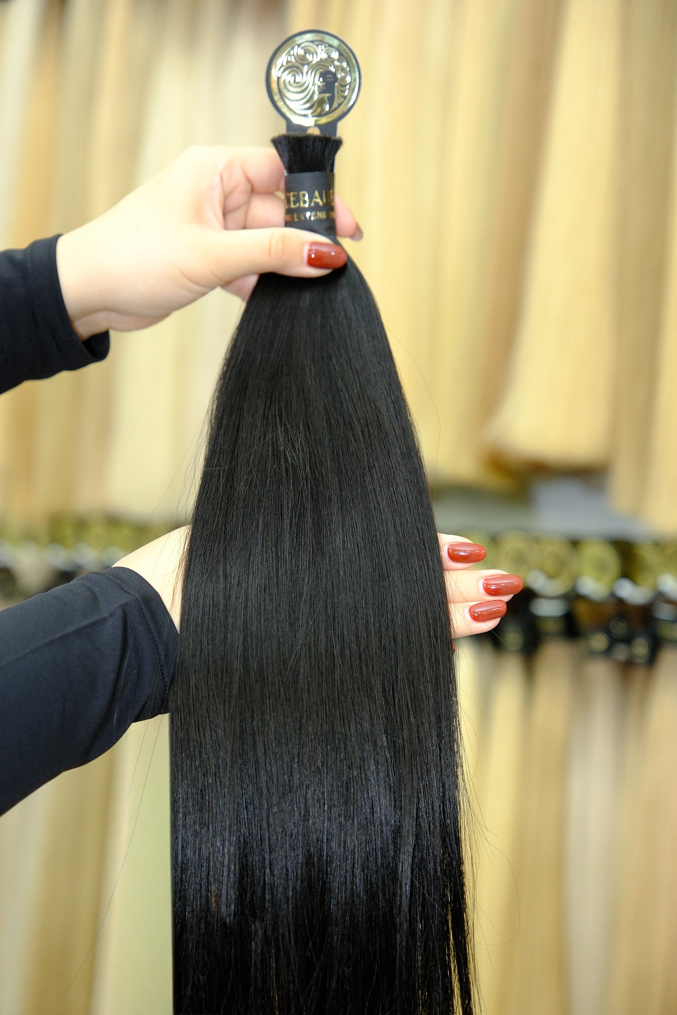 Baby Hair Bulk – 102g, Straight, Black, Virgin Raw, Not-dyed Hair Bundle, Double Drawn
